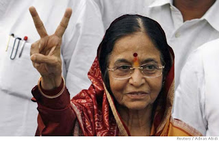 *Caption: Pratibha Patil, India's president, makes a peace sign after being elected the first female president of India in 2007. Courtesy Reuters